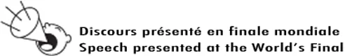 Speech which won first place June 02 2007 at Rochester N-Y, U.S.A. during the semi-finals (Region VI) of the World Championship for Speaking organized by Toastmasters International