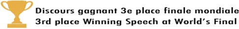 Traduction du discours gagnant de la 3e position 26 Août 2001, Anaheim, États-Unis Championnat du monde des orateurs organisé par Toastmasters International